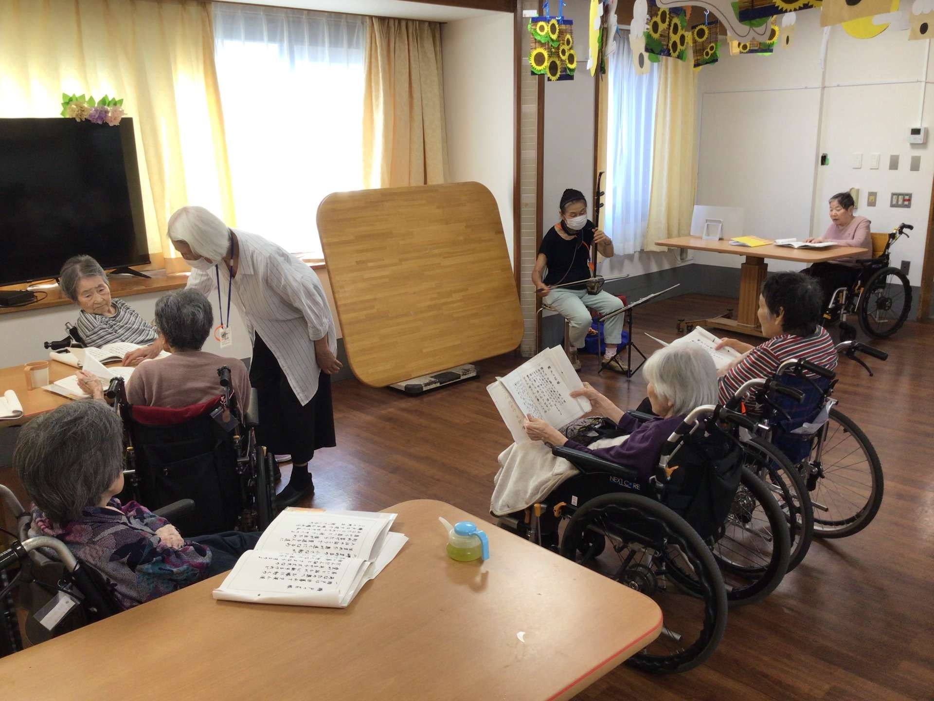 2階4階の利用者様は、2階食堂に集まり二胡の演奏を聞きながら一緒に歌ってました。